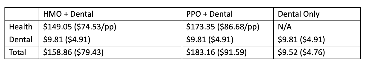 Current employee costs (amount deducted from your paycheck) for each option are listed below: